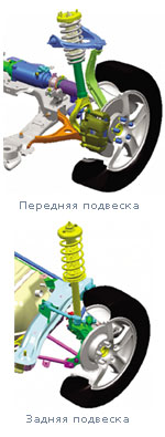 В геометрию подвески был внесен ряд изменений с целью получения нейтральных характеристик при сохранении высокой точности рулевого управления. Усовершенствования включают измененное расположения центра тяжести, углов развала передних/задних колес и уменьшенные величины подъема передней части автомобиля при интенсивном разгоне и «клевков» при резком торможении. Возросшая податливость сайлент-блоков в нижних поперечных рычагах передней подвески позволяет повысить комфорт во время движения и высокую устойчивость автомобиля за счет замены железного узла цапфы на алюминиевую, в которую встроена ступица. Такая конструкция позволяет повысить жесткость колесного узла на 50%, снизив массу цапфы на 30%.